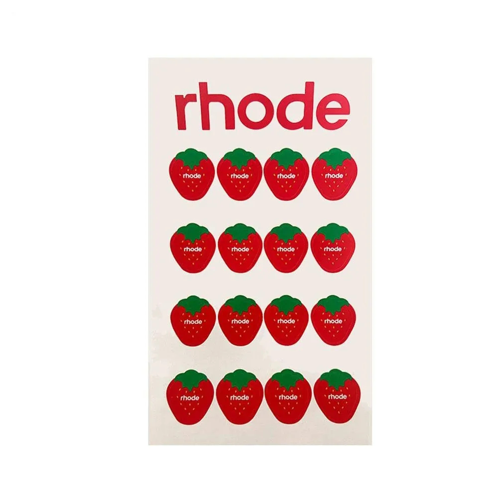 This sticker sheet features a set of vibrant red strawberries, each topped with fresh green leaves and stamped with the Rhode logo. Designed to add a playful, aesthetic touch, these stickers are ideal for customising phones, journals, scrapbooks, water bottles, or any DIY project. The high-quality adhesive ensures easy application and residue-free removal, making them a must-have for sticker collectors and Rhode fans.